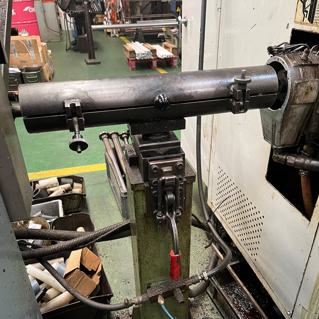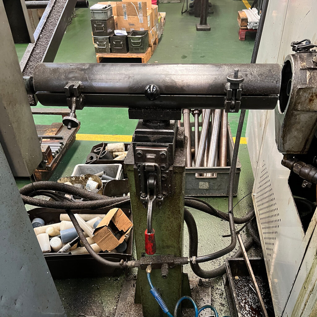 Con columna central regulable y sistema escamoteable para liberar espacio entre el torno y el cargador de barras (para diámetros pequeños).